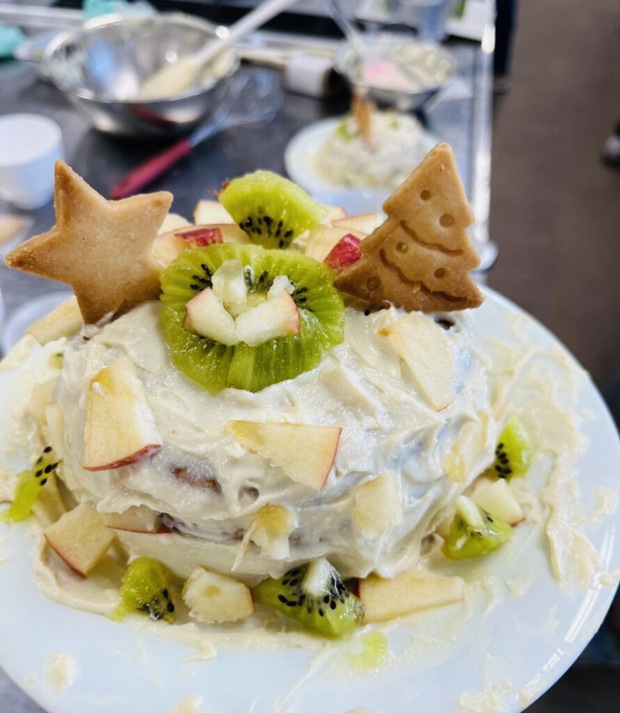 「チョコシナ」さんを講師に招いて米粉のクリスマスケーキをつくりました。