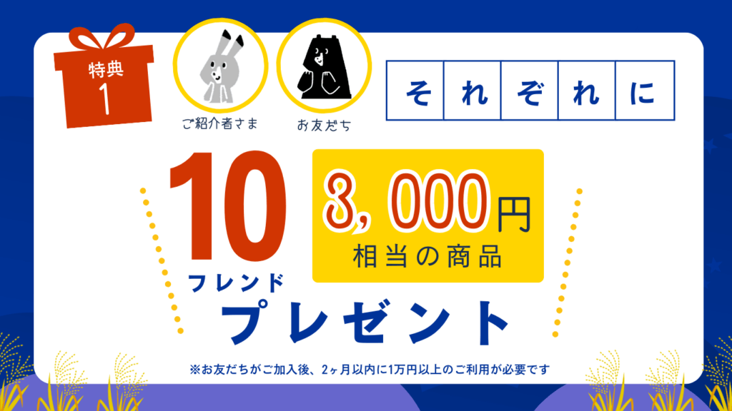 期間中、お友だちや離れて暮らすご家族をご紹介いただくと、