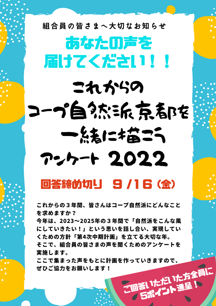これからのコープ自然派京都を一緒に描こう!第4次中期計画アンケート2022 ご回答お願いします
