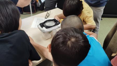 子どもたちは農園で働く虫たちの動画に興味津々で、岡本さんの解説もしっかり聞いていました。一緒に連れてきてくださった従業員の虫たちを観察するのも楽しそうでした。