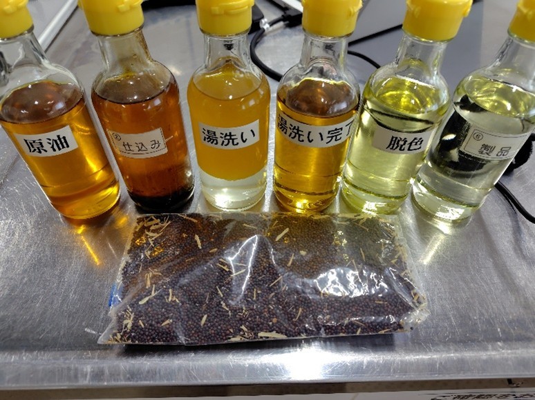製造方法のこだわりポイント【①原料②搾油方法③精製方法】・非遺伝子組み換え(NON-GMO)・数種類の植物油脂それぞれの特徴など、スライドと精製過程の実物にも触れながら講義していただきました。専門的で難しい内容もありましたが、雑学も交えながらのお二人の掛け合いがおもしろく楽しい雰囲気で学ぶことができました。