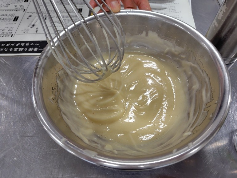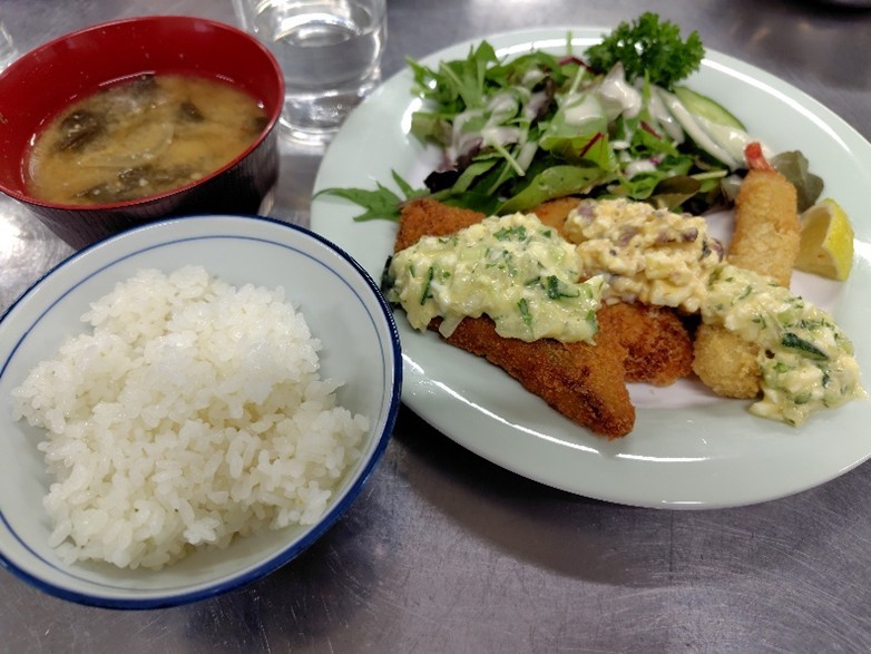 その後、3グループに分かれて、マヨネーズと2種類のタルタルソース、マヨ&タルタルを堪能できる揚げ物定食を作りました。マヨ作りは泡立て器を使用しましたが15分程度でできたグループもあり!「一番搾り純正なたね油」をふんだんに使った定食は美味しく、今回作ったあっさりしたマヨ&タルタルもドレッシング風で美味でした。